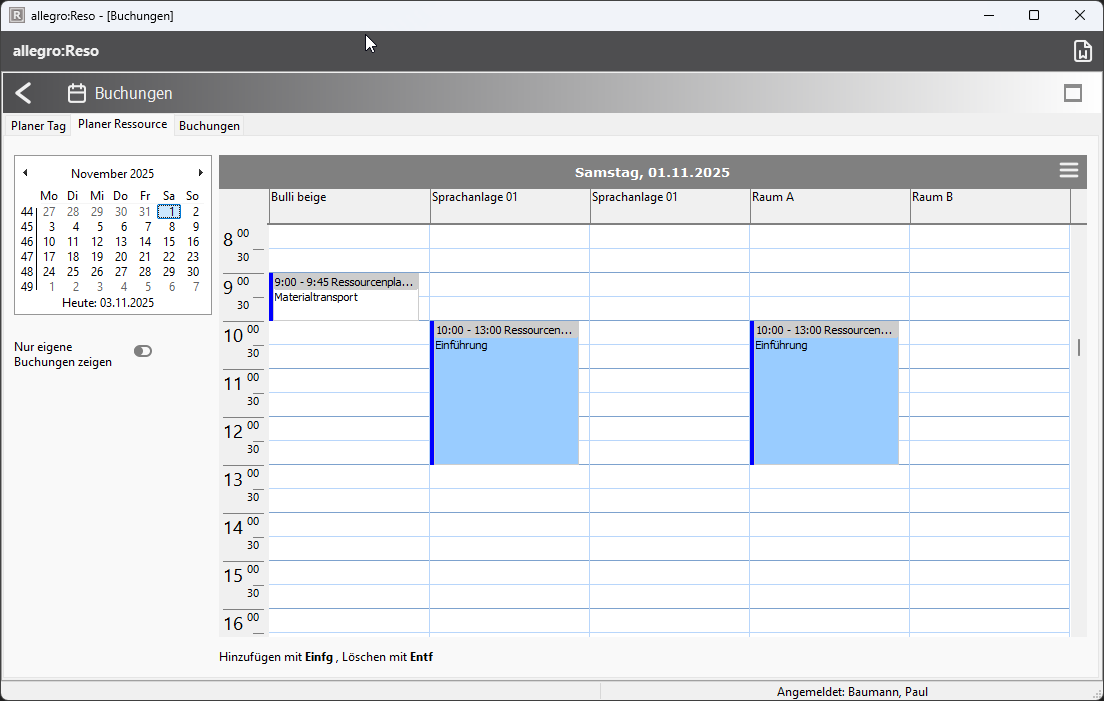 Volle Übersicht: Die zentrale Ressourcen-Ansicht und die klare Kalenderansicht bringen Sie bequem zur Verfügbarkeit der gewünschten Objekte.
