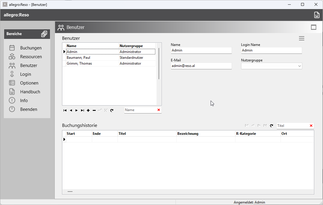 Flexibles UI-Design: Das intuitive Design mit Listenansicht und Detailpanel passt sich optimal an die Verwaltung von Anwendern und Ressourcen an.